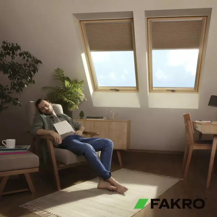 Ekonomiczna wersja okna dachowego obrotowego, która zachowuje wysoką jakość wykonania charakterystyczną dla produktów FAKRO.